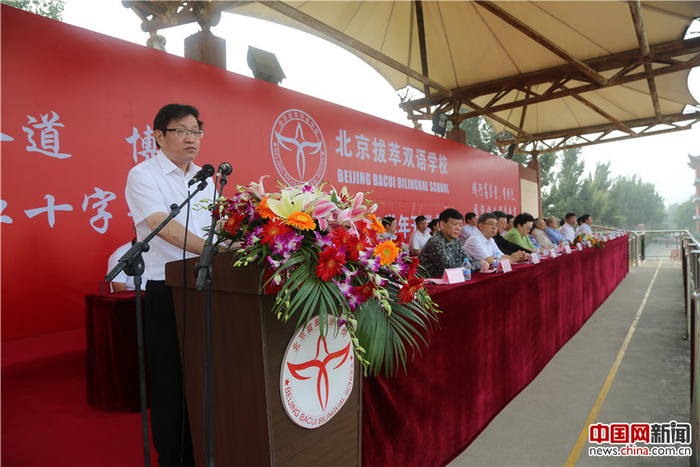 北京拔萃双语学校校长万小平在开学典礼上讲话。