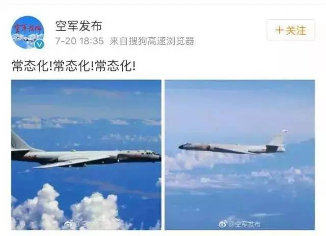 ▲中国空军官方微博发布七月份几次远洋训练照片。