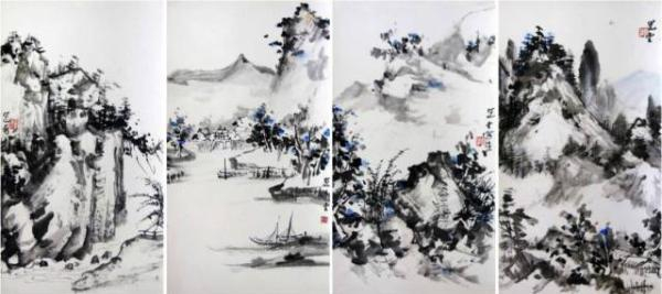 山水对幅,1960年代