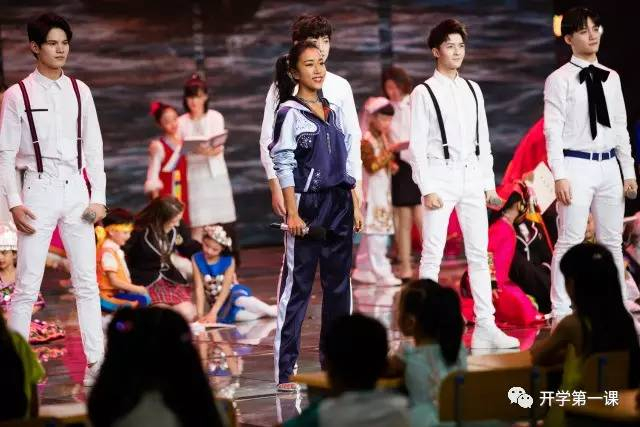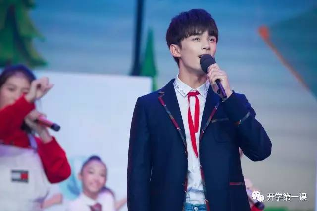 在王宁教授和“汉字叔叔”结束演讲后,任嘉伦作为《开学第一课》课代表,为同学们带来了歌曲《中国话》。