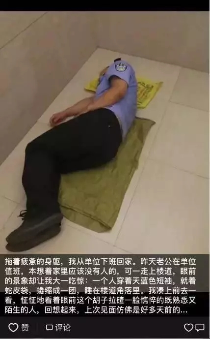 民警凌晨回家怕打扰老婆,躺门口睡一夜。