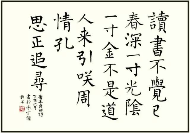 此诗虽不胜在技巧,却胜在感悟。这句“一寸光阴一寸金”似乎是作者随口道来,几近俚语,却是他对时间珍贵的深刻领悟,从而引发了后世读者强烈的共鸣。像这样感悟和哲理性的诗句在唐代是不多见的。