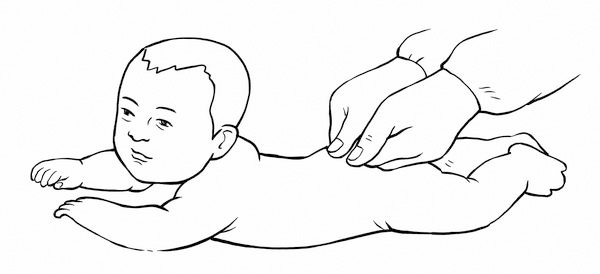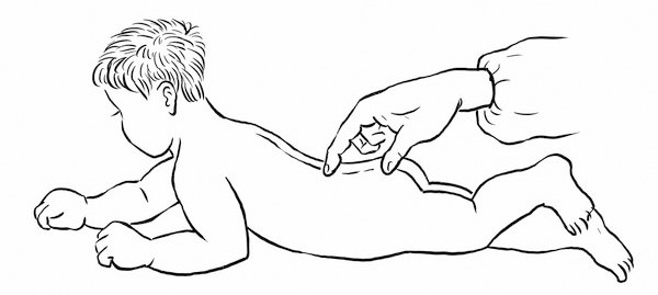 捏脊:双手呈握拳状,以食指中节的背侧紧贴于患者脊柱两侧,拇指伸直前置,并对准食指中节桡侧掌面,而后将皮肤捏起,并轻轻挤压、捻动,双手交替,缓慢移动向前。一般均由龟尾穴开始,沿脊柱两侧而上止于大椎穴,一般连续操作5-6遍。常用于治疗小儿的消化不良、厌食、慢性腹泻、便秘、咳喘、夜啼等慢性病症。