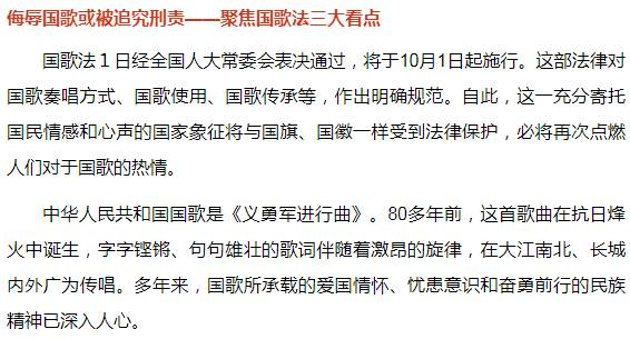 侮辱国歌或被追究刑责——聚焦国歌法三大看点(附国歌法全文)