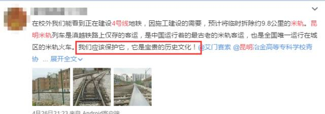 米轨对昆明人来说,总是有着复杂的情怀,