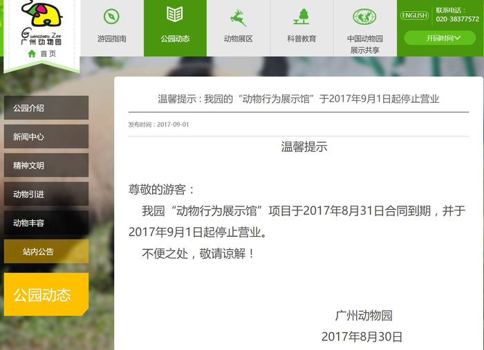 据中新网消息,广州动物园动物行为展示馆9月1日正式闭馆,将规划建设成为非经营性的科普展馆,面向公众免费开放。这意味着,已有24年历史的广州动物园马戏表演就此谢幕。
