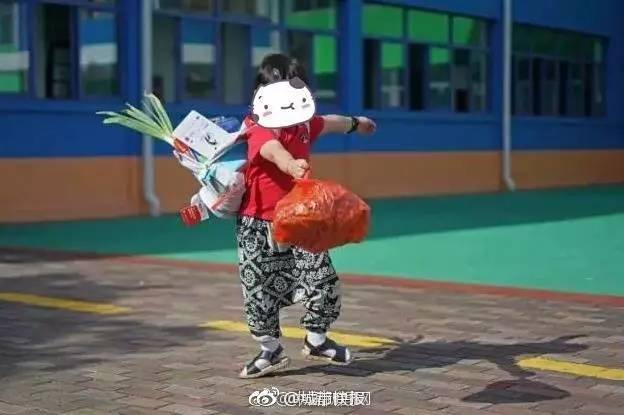 @淼淼你要努力啊:我还以为他的书包暂时被征用来做菜篮子了!