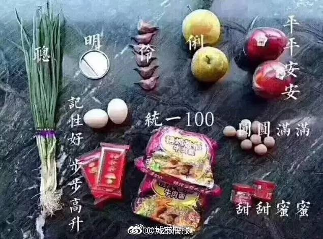 手提的袋子里装了84个烤果,一个袋子40个,一个袋子44个,寓意“考试必过”。