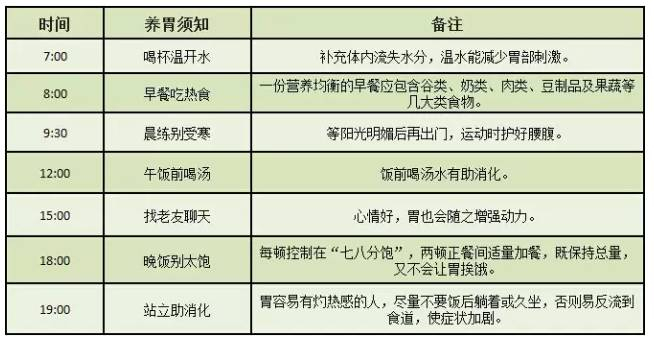 送你一张医生总结的养胃时刻表: