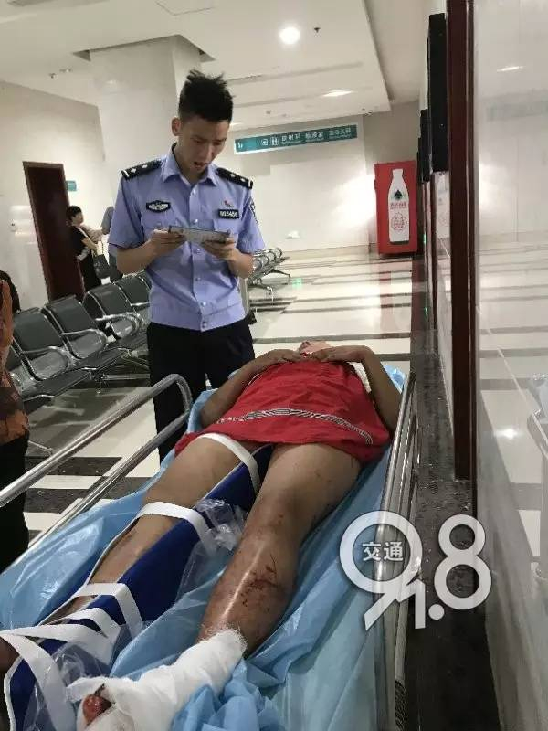 12:02分救护车到事故现场把伤员送往富阳人民医院。万幸的是,该起事故女孩无生命危险,只造成右大腿和锁骨骨折,身上、手上、头上多处擦伤。