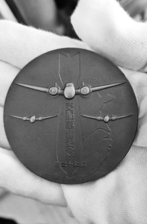一枚“支那事变纪念牌章”,上面有日军的飞机和炮弹