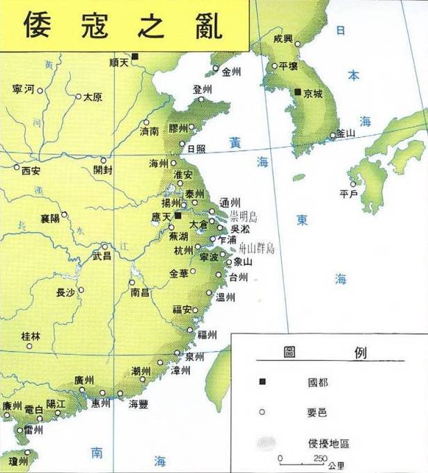 倭患波及地区简要示意图