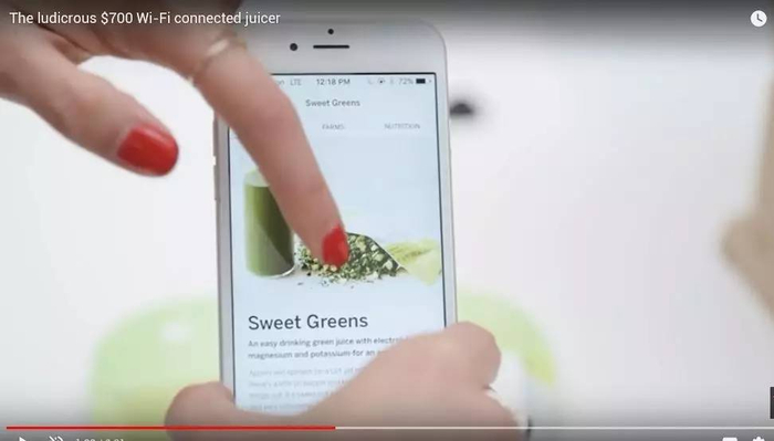不过“皇帝的新衣”很快揭穿了。彭博社记者今年4月亲自试验证明,用双手挤压朱塞罗配售的果汁包,其实比用榨汁机效果还好,而且其宣传的“智能”功能更是令人发笑。