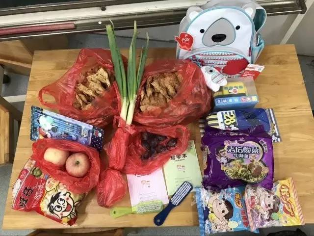 那么,这身装备都代表什么意思呢?呦呦妈妈说,娘家给呦呦准备了葱、苹果、烤果、统一 100 方便面、糖果、菱、还有一些文具用品等,取其谐音,如 " 葱 " 代表聪," 苹果 " 代表 " 平安 "," 烤果 " 代表 " 考过 "," 菱 " 代表 " 伶 " 等,这些都代表了全家人对他的期许,希望他以后学业有成,开开心心,平平安安。