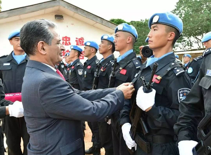 联利团特别代表阿里德.扎里夫为维和警察佩戴和平勋章