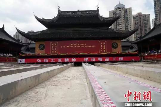 上海玉佛禅寺消除公共安全隐患保护性修缮工程大雄宝殿平移启动 潘索菲 摄