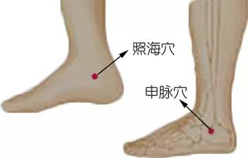 招数一:按压照海穴和申脉穴