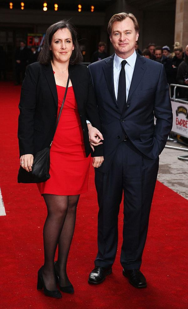 诺兰和妻子艾玛托马斯作为制片人站在一起
