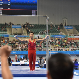 8月31日,全运会体操比赛首日的男子资格赛在天津海河教育园区体育馆开始,经过激烈的角逐,江苏、广东、贵州、山东、广西、北京、湖南、解放军八支队伍晋级团体决赛。