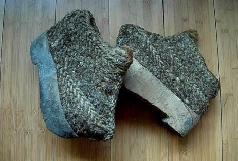 油靴也称“油膀靴”,这种靴子一般不直接穿在脚上,功能相当于鞋套,分有筒和无筒两种款式,有筒称为“油靴”,无筒称“油鞋”:用木片做底,木底钉钉子以防滑。靴面用细绢制作,外面涂上桐油或蜡。