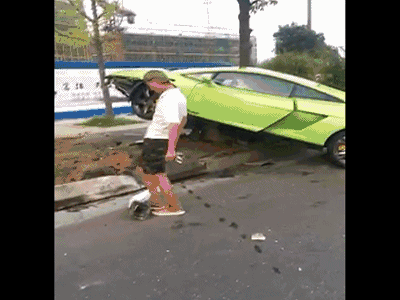 小伙开兰博基尼追前车女孩冲进绿化带 结果双双被拘留