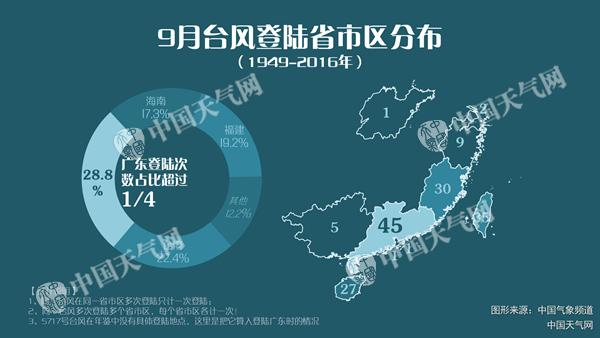 廖军提醒,9月依然是我国的台风季,常年9月平均生成近5个台风,并有约1.8个台风登陆我国,且台风多登陆广东、台湾、福建和海南等地。