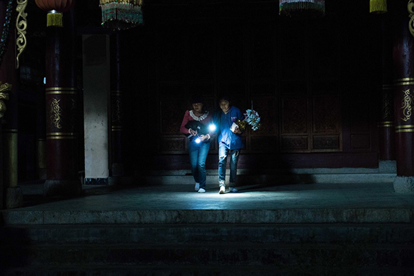 A:是的,我是要把它升华一下,可能你说留守儿童为什么会出现,是经济发展不平均,因为大家去外地打工赚更多钱,再大一点是中国改革开放以后的众多故事。但这些问题一放到大自然中,就是一瞬间的事情。反过来想,在这个溶洞里,这一刻,只有这一对人类母女。可以说他们是为佛跳舞,也是为彼此祝福,也是为了死去的孩子超渡,也是为了祈福寨子不要再有更多(不好)的事情。这样说可能比较夸张,这对母女对我来讲是为人类跳舞。我希望能跳出来看人类现在在做什么,我们到底是从哪来,要如何去哪里,什么对我们最根本,最重要。