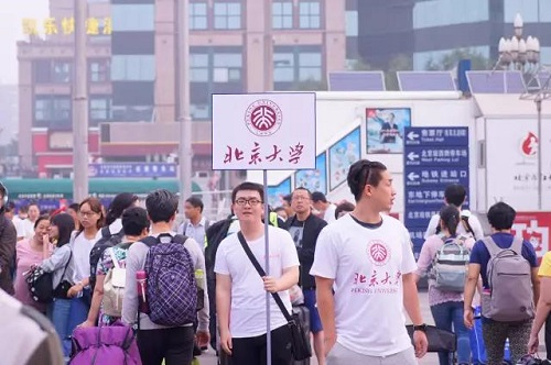 在北京站和北京西站,北京大学校园服务中心出动了131名志愿者、15辆校车,迎接新生们到来,把他们带回学校。