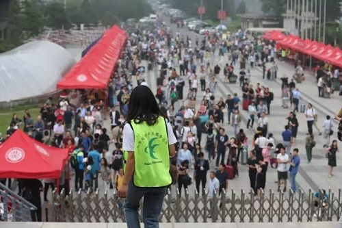 上午8点的邱德拔体育馆已经熙熙攘攘。行李寄存处的黄马甲、邱德拔北门的保安、引导进门的志愿者、总指挥台、各院系的工作人员,一切就绪。