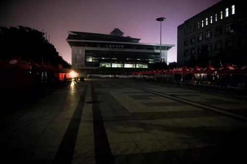 凌晨时分,校园的人与天空已是半梦半醒。忙碌许久、筹备许久的邱德拔终于走入宁静,空旷宽敞、桌椅齐整的体育馆在月光下反射出幽美的绿色,像一张巨幅的油画。