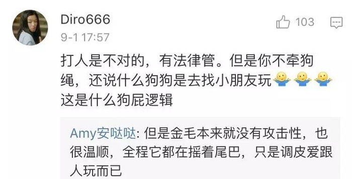 女子自曝遛狗未拴牵引绳遭暴打 网友吵翻