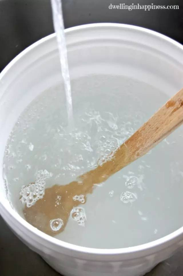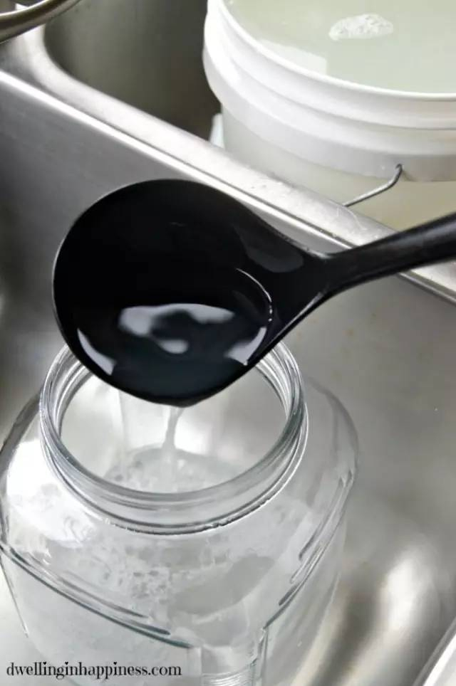 将水装入玻璃瓶内,摇晃几下,放入冰箱冷藏一周,取出来就是完美的洗洁精了。洗锅洗碗、洗水果都有很强的清洁作用,去油污的作用也非常强!