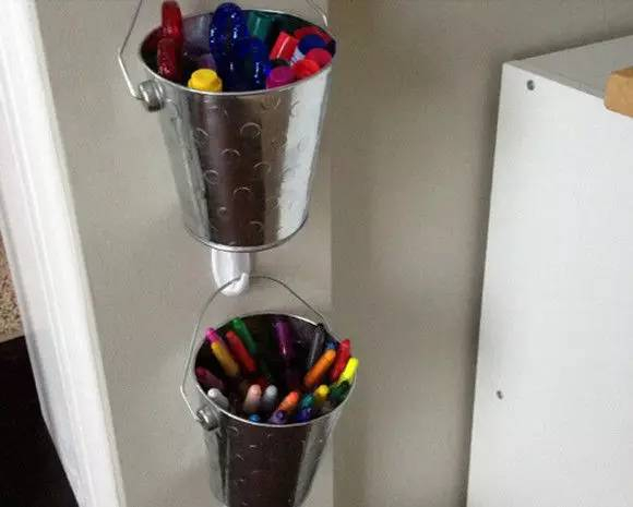 如果收纳的盒子太多,放在桌子上觉得占空间又不好看,也可以把它们挂起来。如果家里有小孩,那这个方法会更加实用。毕竟小孩子的画笔、小型玩具或者文具会非常多。
