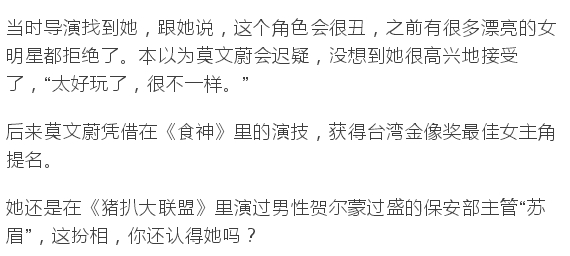 之后,不同于其他女明星怎么好看怎么来,她却专挑“丑角”来演。