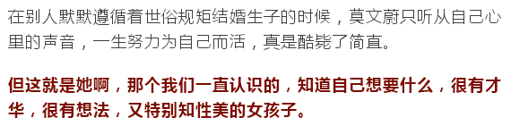 她一直活得很通透,却也不将就。事业如此,爱情更是一样,爱时就好好爱,不爱了就分手,从不遮遮掩掩。