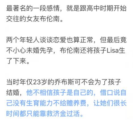 后来,因为苹果公司筹备上市,乔布斯才不得不处理好自己的私事,所以直截了当带孩子做了亲子鉴定,确认是亲生女儿后,开始不情不愿地付抚养费。