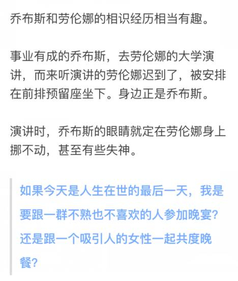 在乔布斯看来,劳伦娜和之前那些女友最大的不同,大概就是她与乔布斯,始终是旗鼓相当、势均力敌的。