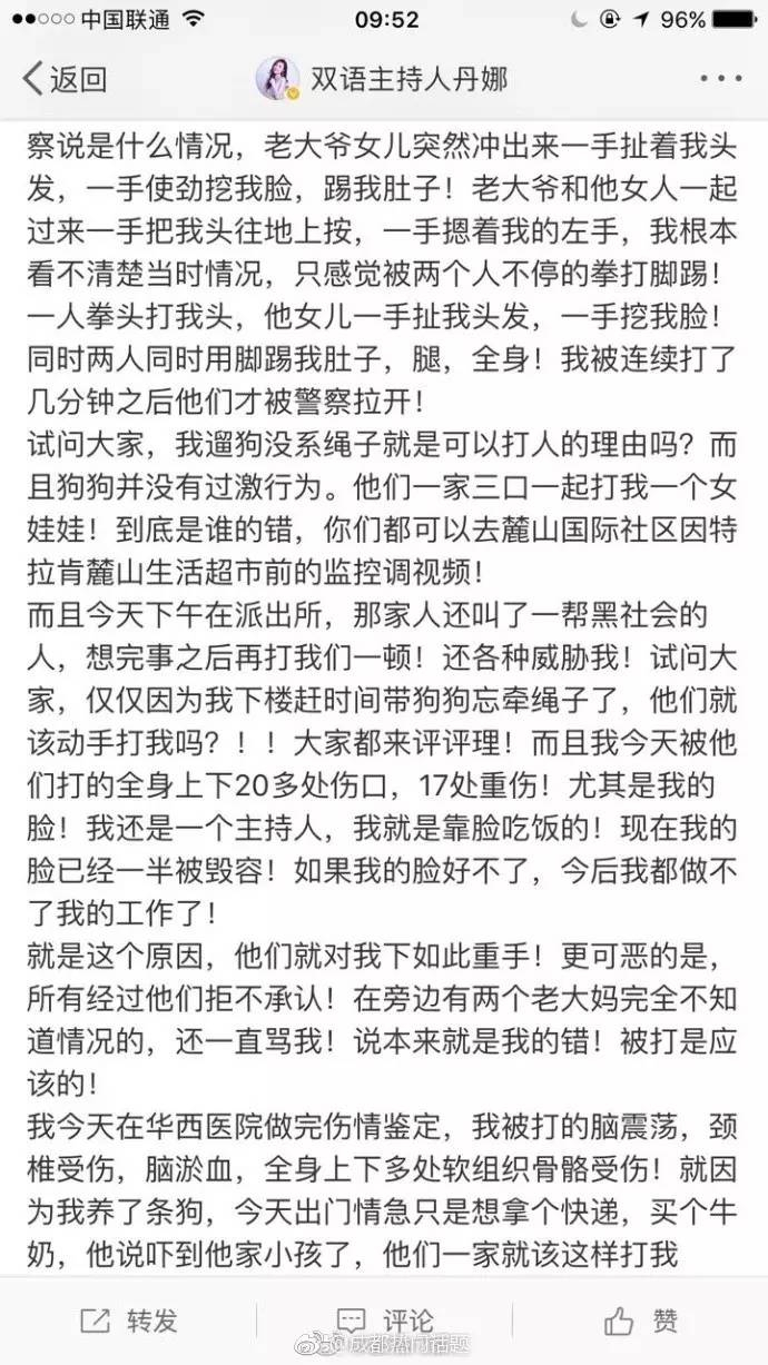 女主持人遛狗不栓绳遭暴打,到底冤不冤?