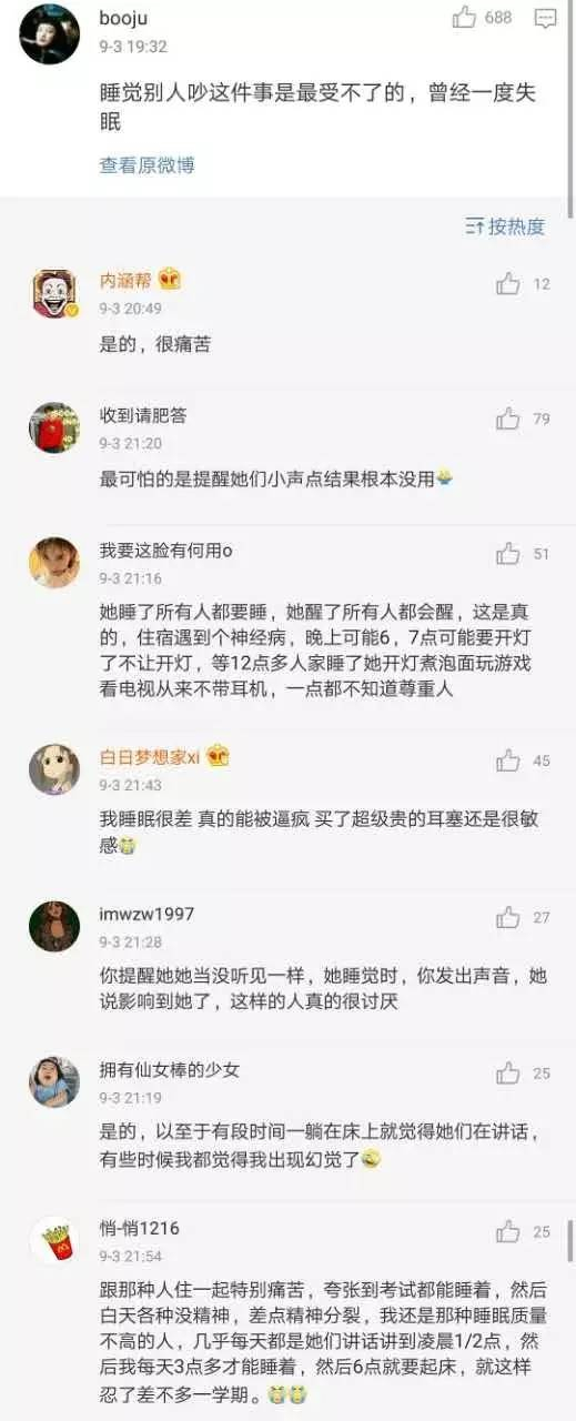 其中,有网友说,睡觉别人吵这件事最让人受不了。