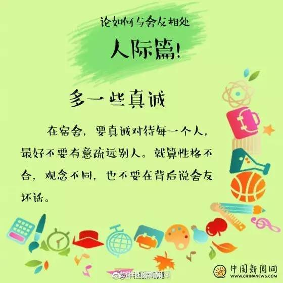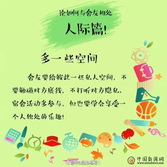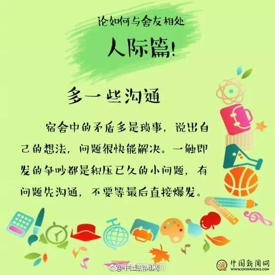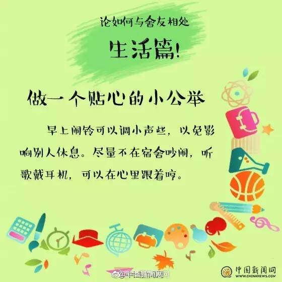 其实只要换位思考,你尊重室友,室友也会尊重你!别人的东西别乱动,卫生一起打扫,学会这些技巧↓↓与室友相处更融洽!