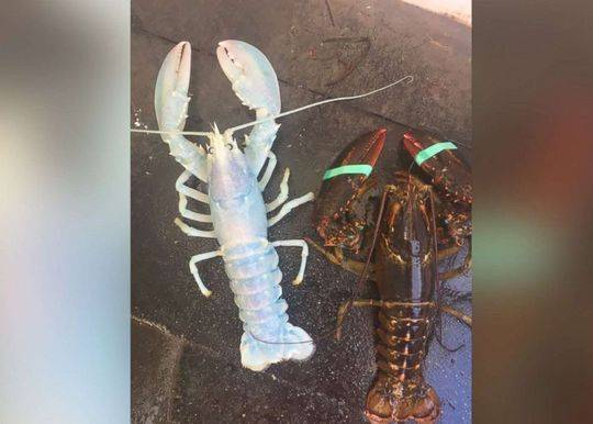美国渔民捕获半透明蓝白色龙虾,发现怀孕后将其放生