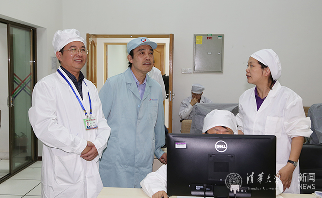 2014年9月4日,时任清华大学副校长袁驷(左二)、工程任务总设计师陆建华(左一)在灵巧通信试验卫星发射现场。