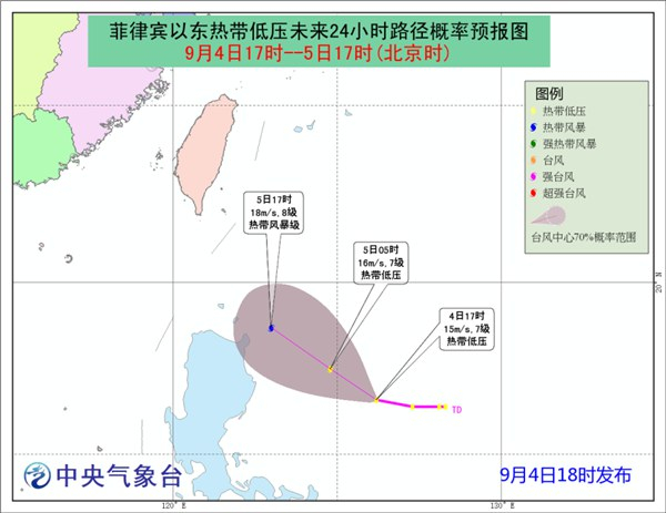 预计,该热带低压将以每小时15公里左右的速度向西北方向移动,强度逐渐加强,并有可能于未来24小时内发展为今年第17号台风,而后逐渐向台湾东南洋面靠近。