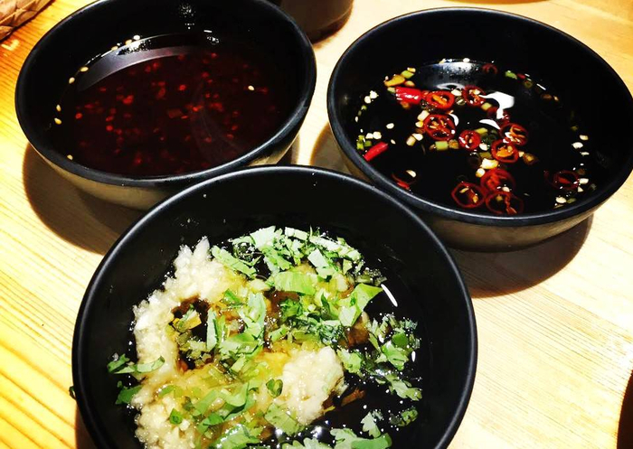 酱油小米椒,麻辣蘸料,蒜泥香菜