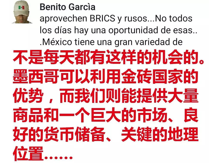 “不是每天都有这样的机会的。”一位墨西哥网友在脸书上评论说,“金砖+”的合作“机不可失”。