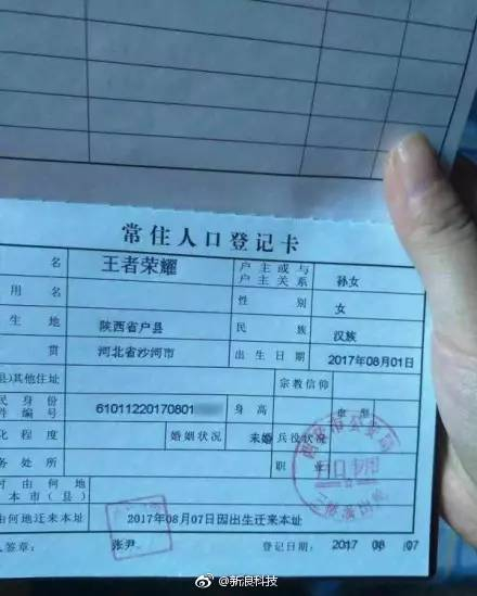 说实话,这年头,啥都不好做,名字也不好起。陕西省户县,一户人家给孩子取名“王者荣耀”,并成功上户口。不知道孩子长大以后,知道自己和游戏同名有啥感想