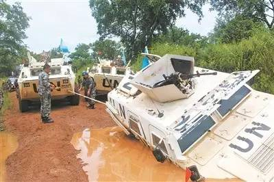除了战火的威胁,维和地区现实存在的问题,也让维和队员头疼,比如路况差、行车难。比如在南苏丹首都朱巴,300公里的路上,大大小小的水坑难以计数。有一天,维和队员仅前进了21公里。为了填坑洼路段,他们光铁锹就用坏了21把···对中国维和步兵营而言,长途巡逻和武装护卫不是什么新鲜事。自第3批维和步兵营部署以来,他们先后29次执行此类任务,在一条条泥泞不堪的道路上,中国蓝盔克服艰难险阻,托举起和平的梦想。