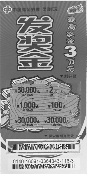 也就在当天晚上,苏州区木渎镇南浜村南浜路口彩票亭32050962投注站传来喜讯:一彩民喜中刮刮乐“发奖金”一等奖3万元。据销售员回忆,幸运彩民是一位来自陕西的姑娘,彩民雷女士平日就在附近上班,当日晚8时20分许经过彩票店门口,想着购彩休闲娱乐一番,就进店买了几张刮刮乐。当刮开其中一张面值2元的“发奖金”时,看着彩票刮开区域显示的“30000,2,1000,100,30000,30000”,彩票上显示:刮开玩法区,出现3个相同的数字,即中与此数字相同数额的奖金。3个3万元,雷女士不敢相信自己的眼睛,再三向销售员确认,确定自己中得了三万大奖后,雷女士笑得合不拢嘴。