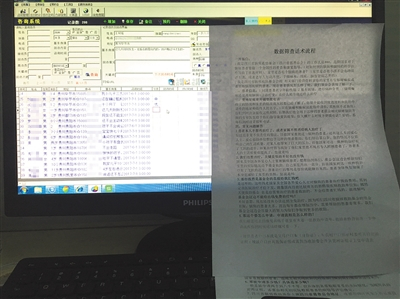 之后,于飞从她办公桌上拿出一份名为“数据筛查话术流程”的材料递给记者,“这是今天的任务,把话术看完。这是必须记下来的。”