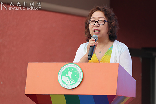 家长代表、三年级11班丁晓冬的母亲从学生家长的角度对新校训进行了解读。她认为,新校训将学习、做人、做事的诸多道理浓缩成12个字,并巧妙地蕴含了人大附小的校名,匠心独具、内涵丰富,充分反映了附小的办学理念、治学和文化精神。